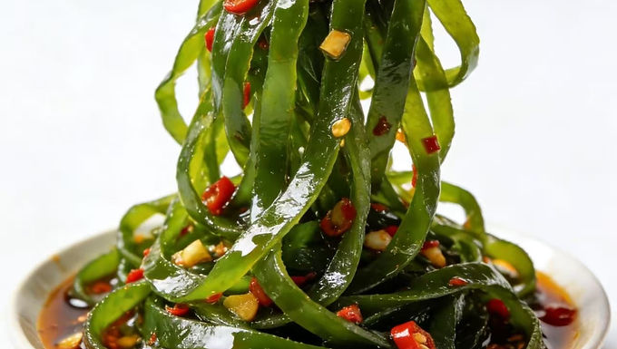 1. 干海带丝泡发洗净,放入沸水中焯水3分钟,捞出过凉水沥干;